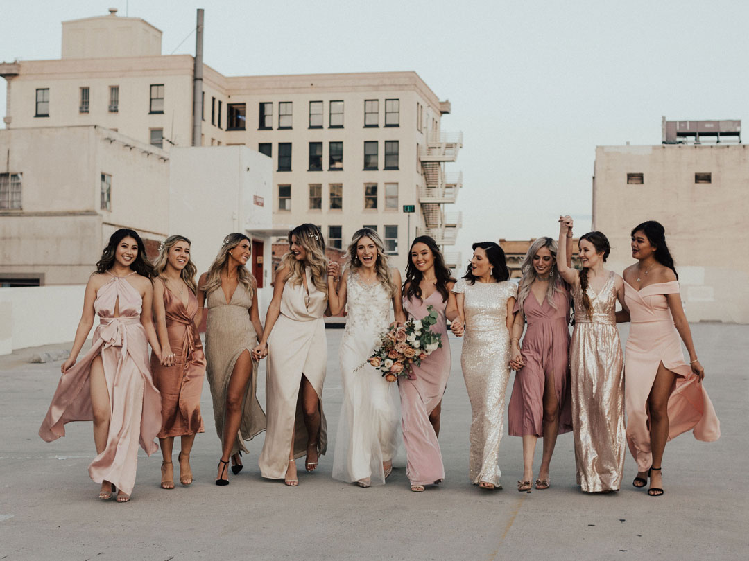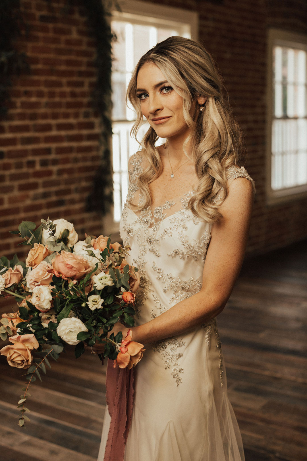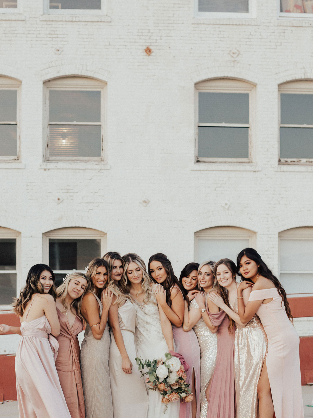 Danielle’s vintage beauty of a dress was accompanied by blush toned bridesmaid dresses to match the peachy pink florals that were bundled together in her bouquet.