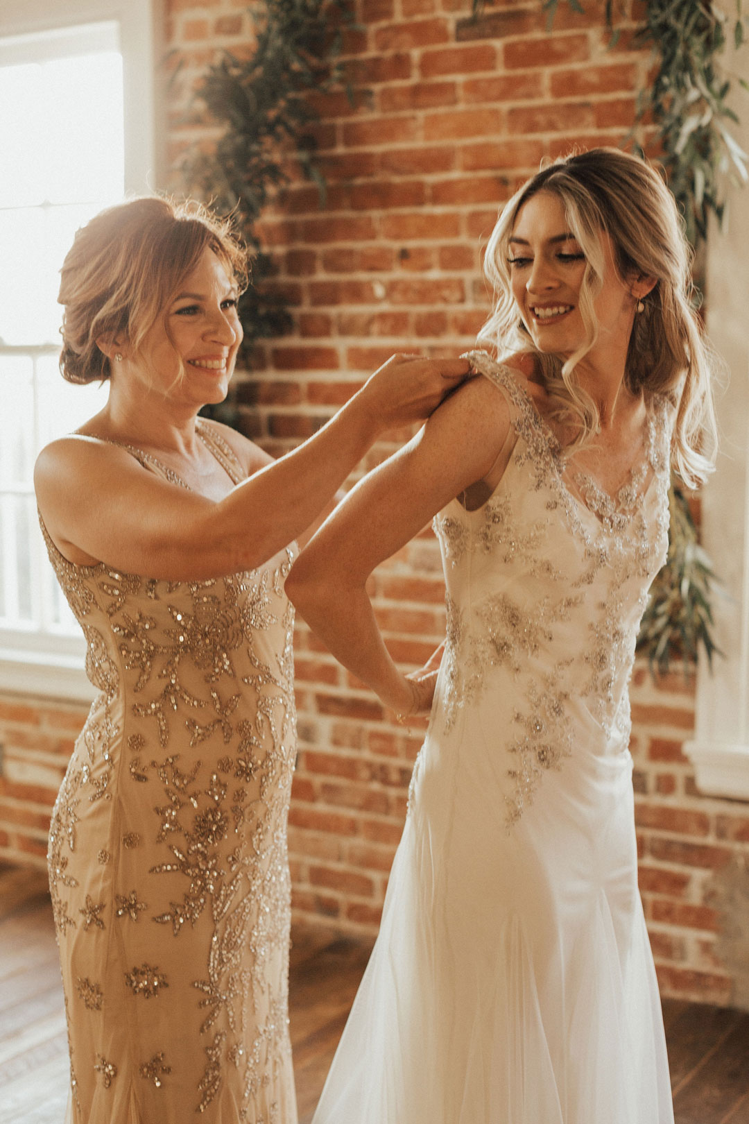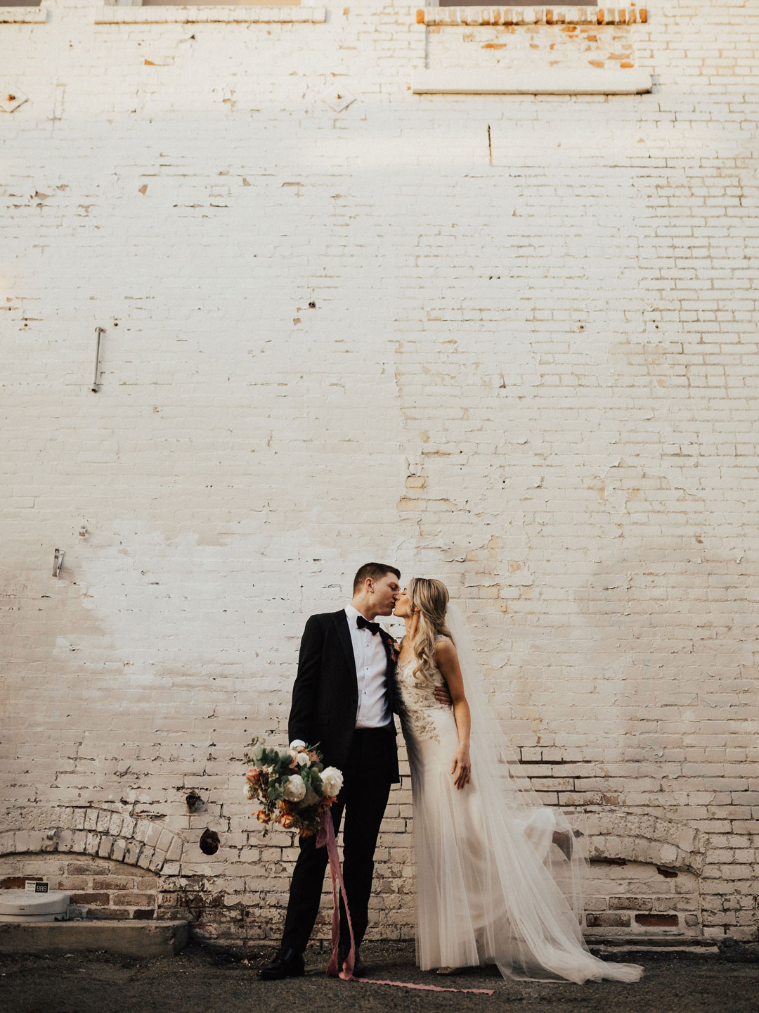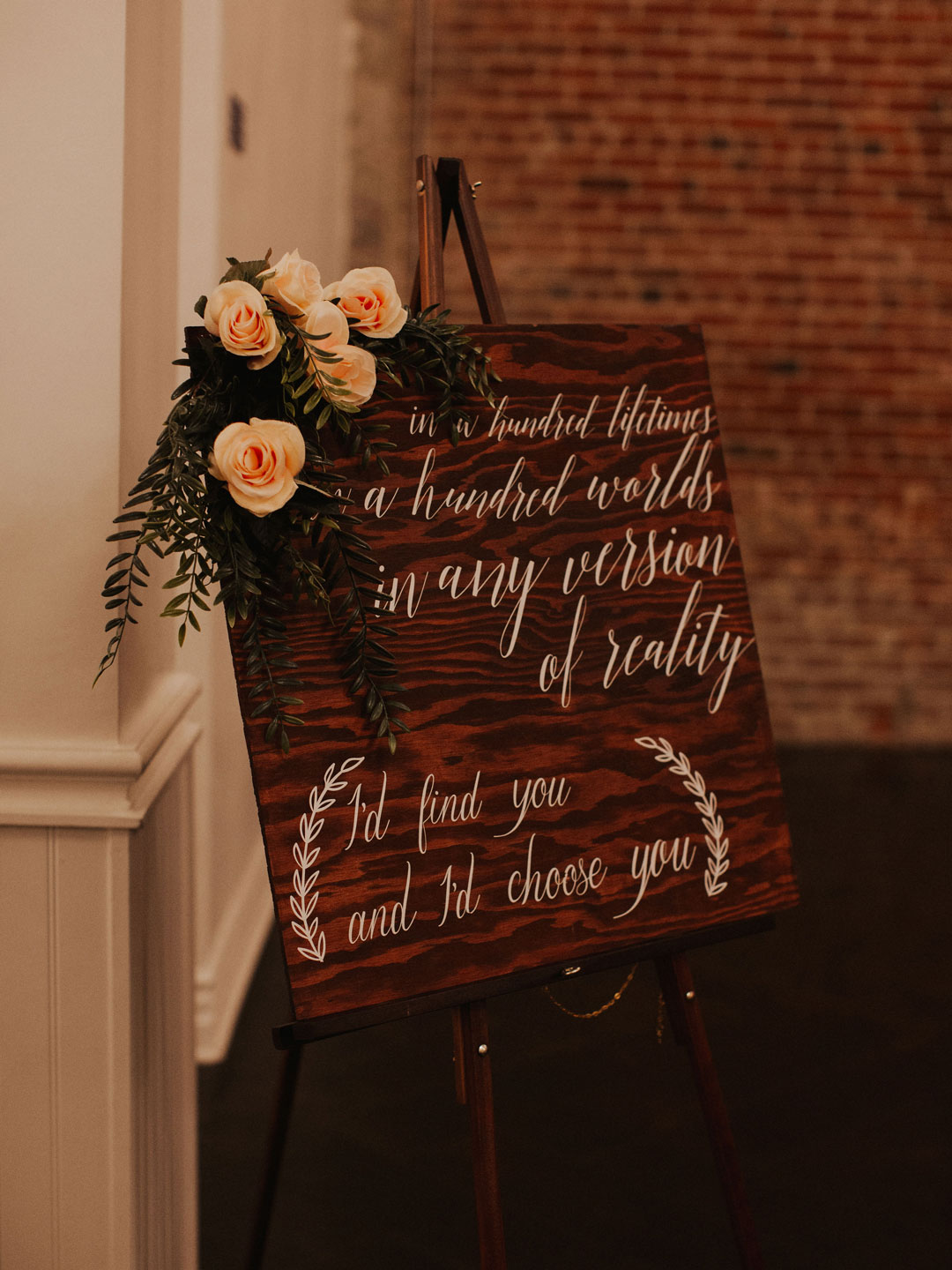 The sun was just setting on Danielle and Alex’s special day illuminating The Estate on Second in a golden glow. Personalized wooden signs and agate place cards added to the already warm, inviting space. The exposed brick walls made for a beautiful backdrop to exchange I dos.