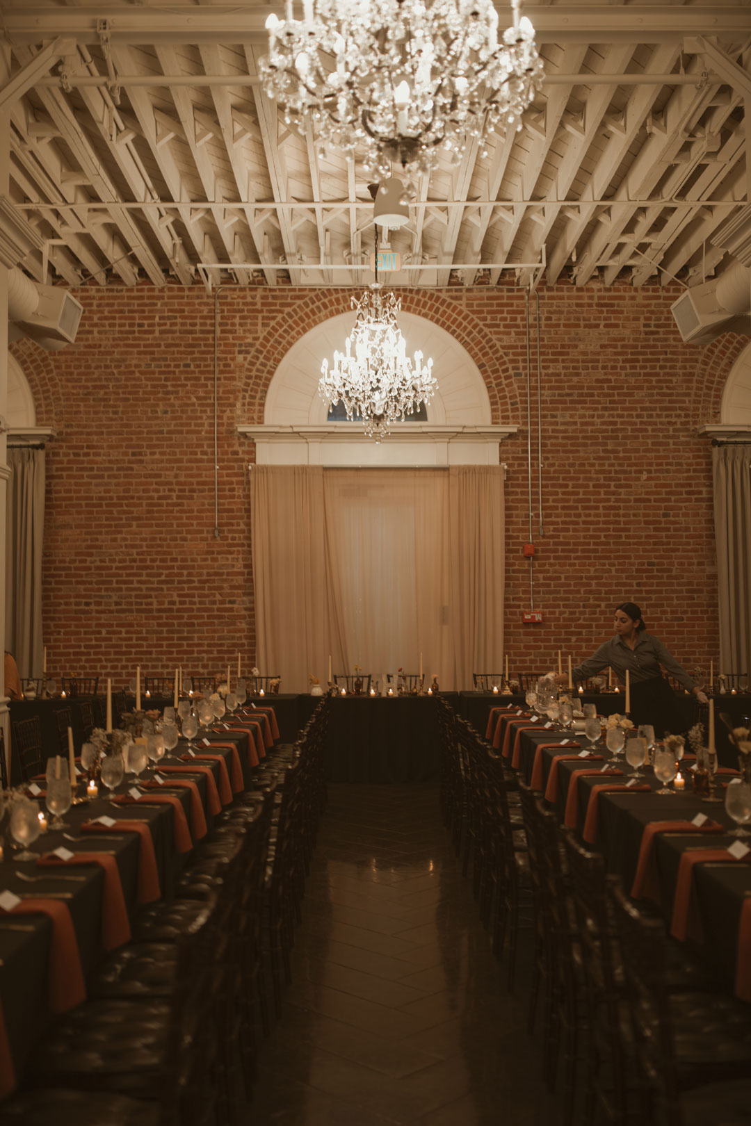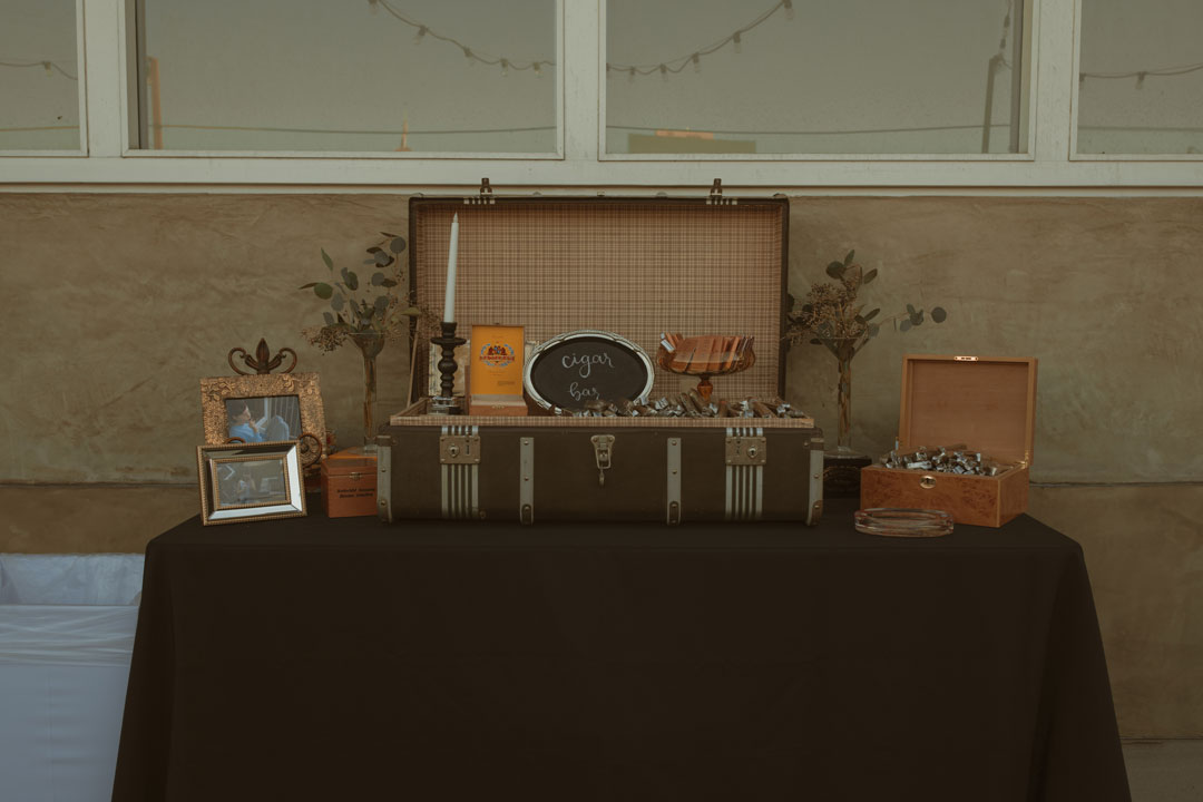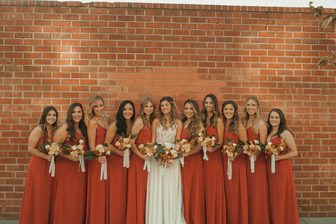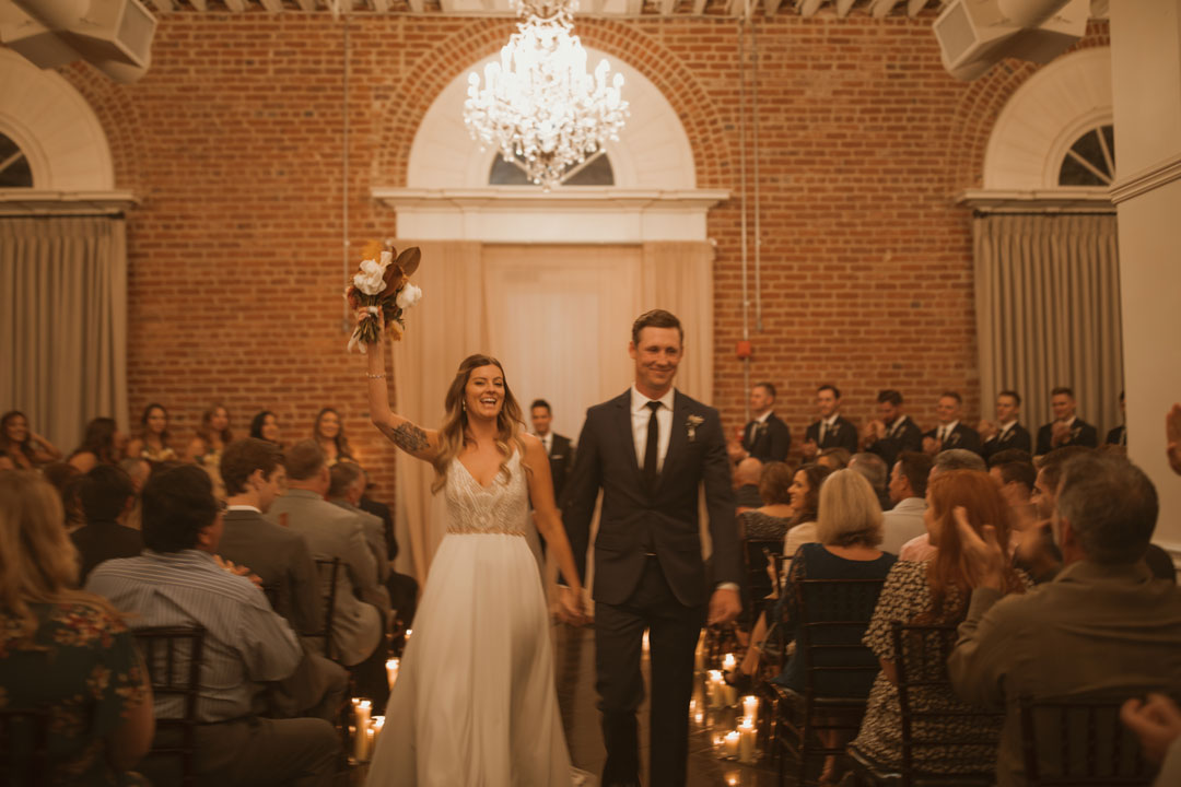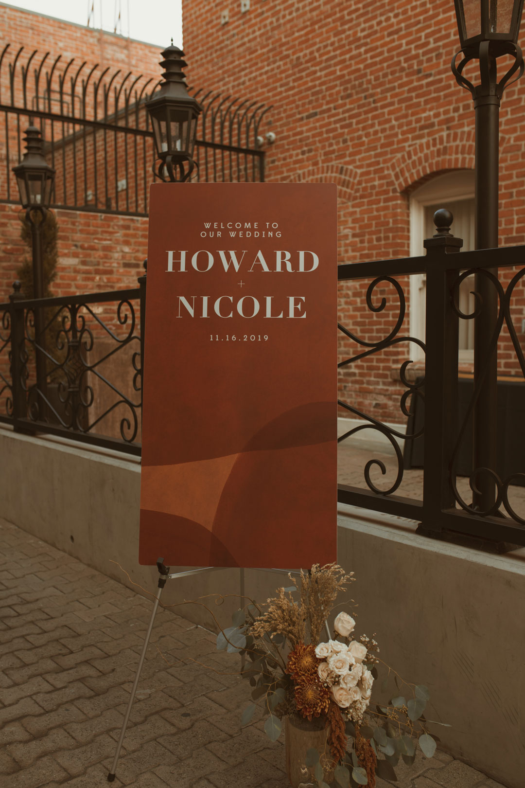 Nicole met Howard on the Terrace at The Estate on Second, tapped his shoulder, and awaited their first look. Howard turned toward his bride and emotion filled his face. He couldn’t hide the overwhelming love he was feeling, and neither could Nicole. Bridesmaids, groomsmen, and family met them for photos before the ceremony. The bridesmaids were dressed in rust orange maxi dresses and the groomsmen wore deep navy suits and black ties. The group made their way all around the venue to capture the perfect shots before making their way into the Crystal Ballroom. Guests were seated and the wedding party began their walk down the candlelit aisle. Nicole and Howard shared their own personal vows to one another, broke bread, and were pronounced husband and wife. Their friends and family cheered as they made their walk out of the Crystal Ballroom and into cocktail hour. Pomodoro Bruschetta and Ellie’s Parmesan Meatballs were tray passed and the bar opened serving the newlyweds signature cocktails, a Skinny Margarita and Old Fashioned. On the Terrace, a cigar lounge was set up for guests to enjoy throughout the night. Before long, everyone was called back down to the Crystal Ballroom for dinner. A buffet of Grilled Marinated Vegetables, Caesar Salad, Chicken Marsala, Roasted Italian Zucchini, and Tortellini with Creamy Pesto was unveiled. Guests ate their fill, then took part in fun activities like a photo booth, dancing on the dance floor, the cigar lounge and grabbing a Cookie & Milk Shot for something sweet. The unforgettable evening came to a close after sharing many memories and creating new ones.