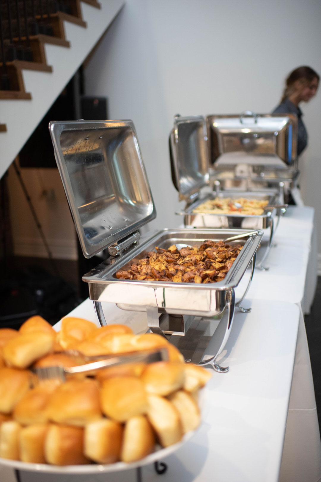 As cocktail hour came to an end, everyone found their way inside The Crystal Ballroom. Rust napkins and fresh floral arrangements added pops of color around the reception space and rose gold table numbers helped guests find their seats. Kevin and Paula made their grand entrance into their first dance in front of family and friends, then sat at their sweetheart table for toasts. The bride and groom’s nearest and dearest made everyone laugh and cry as memories were shared and glasses clinked. Dinner was served shortly after and included Grilled Marinated Vegetables, Caesar Salad, Zucchini Lime Chicken, Penne Alla Checca, and Red Roasted Garlic Potatoes. The menu was hand selected by the bride and groom with the help of our Event Specialist, Sierra. Guests ate every last bite and had nothing but great things to say about dinner, but they were in for a real treat for dessert! Instead of traditional wedding cake for dessert, the bride and groom surprised their guests with our Kouign Amann desserts. Everyone was amazed when the delicious desserts were torched and caramelized to perfection. The night ended out on the dance floor with a bride and groom money dance and guests showing off their best moves.